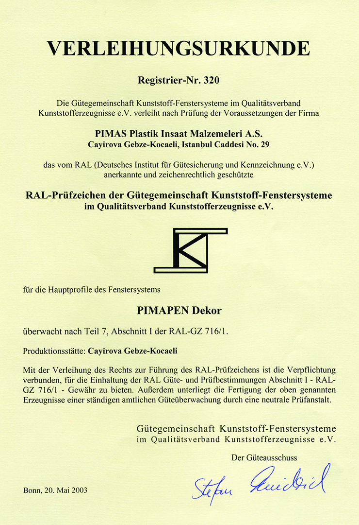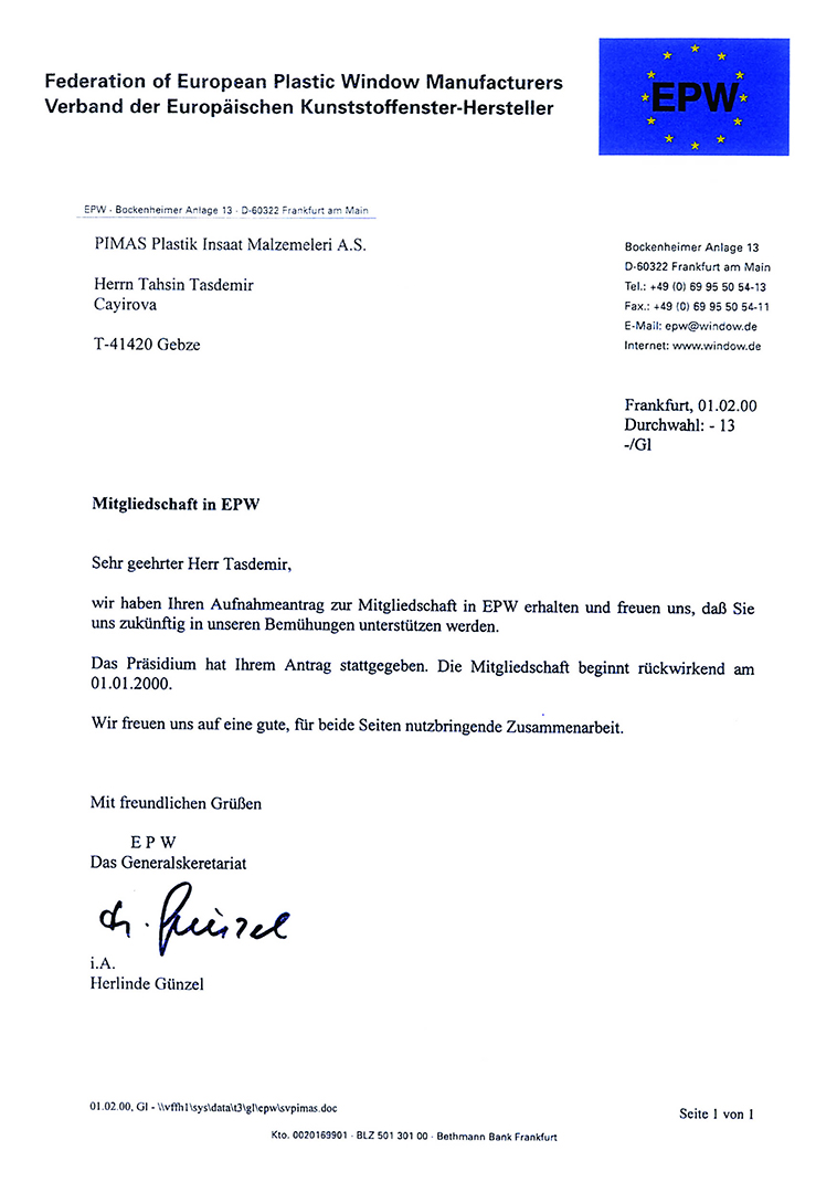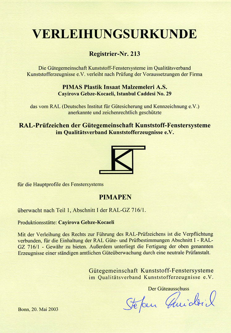 kuruluşundan bu güne, Dürüstlük , Kaliteli üretim , ve müşteri memnuniyetini önceliyen profesyonel hizmet anlayışı özellikleri ile istikrarlı bir büyüme gösteren firmamız ,Yurt genelinde 60.000’i aşkın daire teslimi yaparak Türkiyede Kapı ve Pencere Sektörünün en büyük ilk 5 kuruluşlarından birisi olmuştur. Bu başarımız pimapen tarafından defalarca üstün performans ödülüne layık görülmüştür.